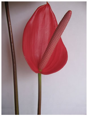 El Anturio, posee popularidad por su espectacularidad y belleza. Es una flor que raramente suele presentarse en ramo y es frecuente que se utilice un único tallo como complemento de centros de mesa o ramos de novia.